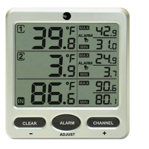 Simple to read, simple to use, and affordable, the WS-091-C includes a thermometer in the console and can remotely read and update up to eight remote thermometer sensors at the same from the large digit, uncluttered display (sold separately).