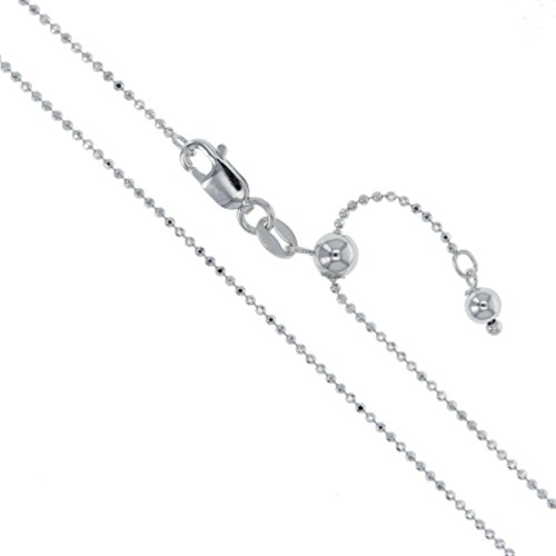 -. Title : Rhodium Plated Sterling Silver Diamond-Cut Ball Bead Chain 1.2mm 925 Italy Dog Tag Necklace