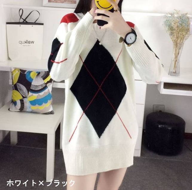 〓〓〓〓〓〓〓〓アーガイル柄が可愛いニットチュニックボトムと合わせてカジュアルスタイルに♪冬のコーデの幅も広がるニットチュニック☆〓〓〓〓〓〓〓〓◆素材◆アクリル◆サイズ◆/М~Lサイズ/フリーサイズ/バスト79cm~116cm/肩幅45cm/袖丈48cm/着丈72cm◆カラー◆ブラック:ネイビー:ホワイト〓〓〓〓〓〓〓〓商品のご案内海外輸入商品の為リーズナブル価格でご提供をさせて頂いております。下記の事項をご確認ご了承の上ご注文をお願い致します。♯予約商品になります。生産輸入の関係で発送日が前後する場合がございます。♯再生産の関係で画像とデザイン、多少の色具合が異なる場合がございます。♯メジャーでの測定の為若干の誤差はご了承下さい。♯生地不良等の関係で生産中止になる場合がございます。♯海外代理店より輸入の為、商品タグ、洗濯表示がない場合がございます。