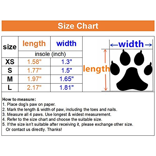 Studio : Ulandago Publisher : Ulandago Binding : Misc. Product Description How to measure: Step 1: Place the dog paws on paper. Step 2: Mark the length and width of paws, including the toes and nails. Use longest widest measurement for perfect fit. Note: In order to get the exact data, 4 of dog paws need to be measured. Size Chart (Length x Width) XS (1.58"L x 1.3"W) S (1.77"L x 1.5"W) M (1.97"L x 1.65"W) L (2.17"L x 1.91"W) Design for small and medium dog specially. Such as Chihuahua, Poodle, Yorkshire terrier, bulldog, Dachshund, Schnauzer and other lovely dog with similar size. Please measure the dog paws before ordering. If the size is not suitable, please return or exchange other size. 0