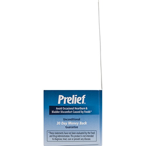 FOR ACID SENSITIVE INDIVIDUALS: Prelief (calcium glycerophosphate) was developed by the makers of Beano and Lactaid, and has a 20 year history of helping acid sensitive people eat the foods they love. ENJOY COFFEE, WINE, PIZZA and TOMATO SAUCE AGAIN: These foods are highly acidic and may trigger discomfort. Prelief can be taken as often as you think you will need it. Whenever you start to eat an acidic food that might make you feel uncomfortable, just take Prelief. You can take it as often as you like, morning, noon or night. You may find you need or more or less depending on the amount of food and your food sensitivity. PRELIEF IS DRUG FREE Prelief is not a drug and is a good source of calcium. Prelief adds calcium while reducing the acid in foods.Feature