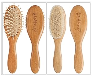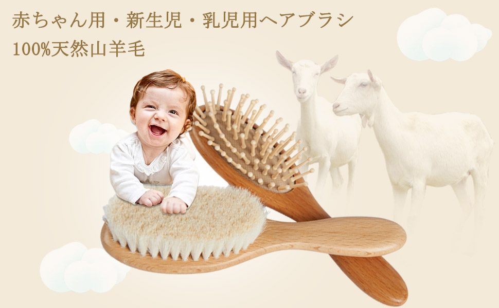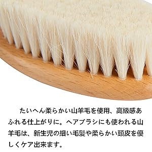 - 新生児の頭皮はデリケート。沐浴後は肌も敏感になっていますので毛先が当たっても安心の優しい山羊毛をおすすめします。また、天然素材の山羊毛は静電気も起きないため、ふわふわの乳児の整髪にも適し、ブラッシングすることで髪に健康的な艶を与えます。