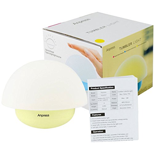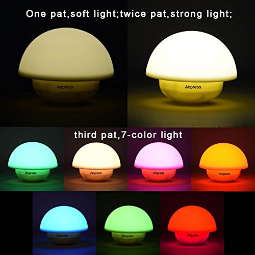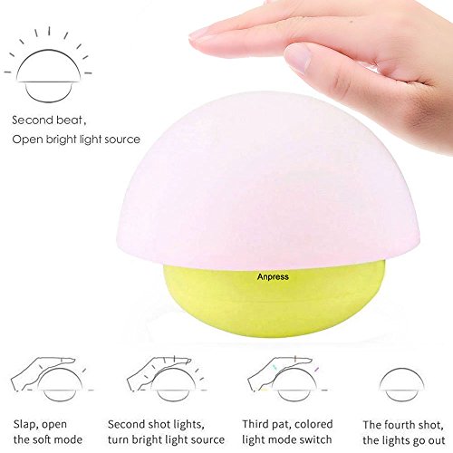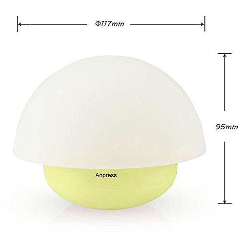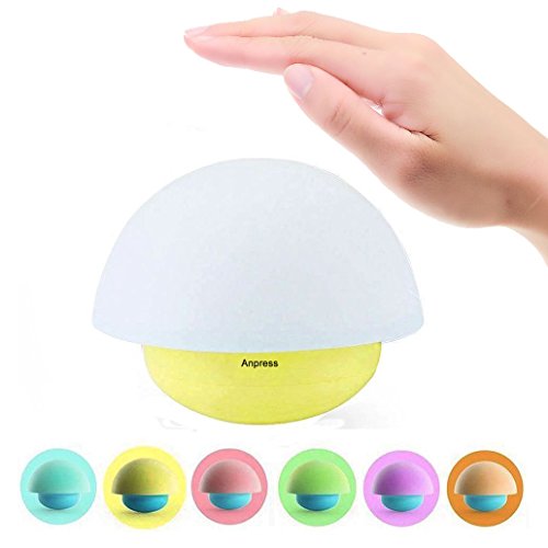 Anpress Tumbler Mushroom Design Colorful Night Light Touch Sensor Dimmable LED Nightlights with Softlight,Stronglight and 7 Colorful Light Best Gift for Baby Room, Bedroom, Nursery, Outdoor (Yellow)