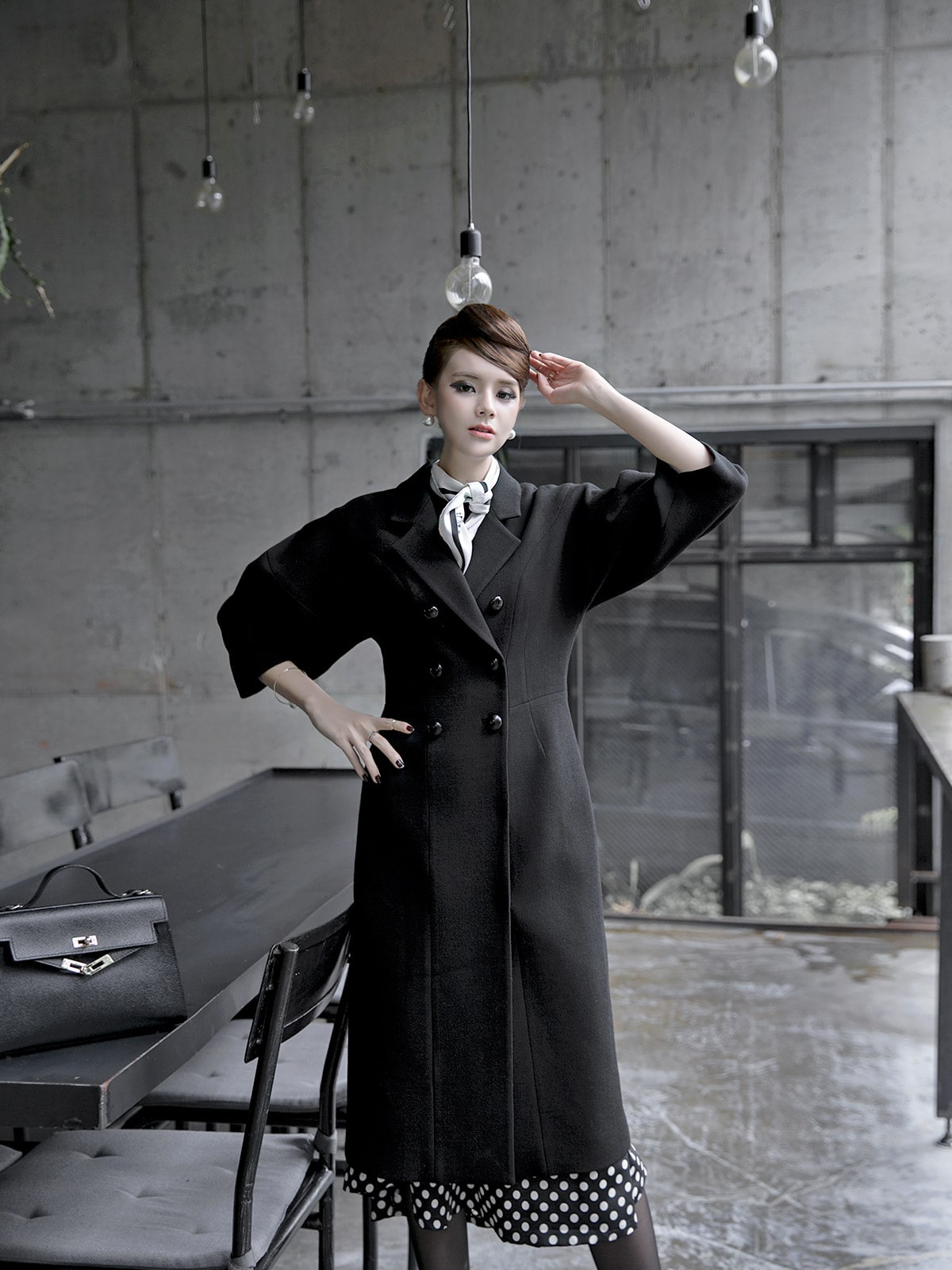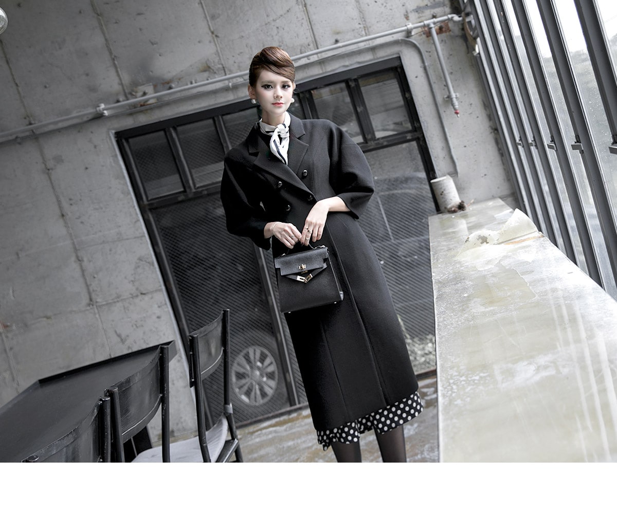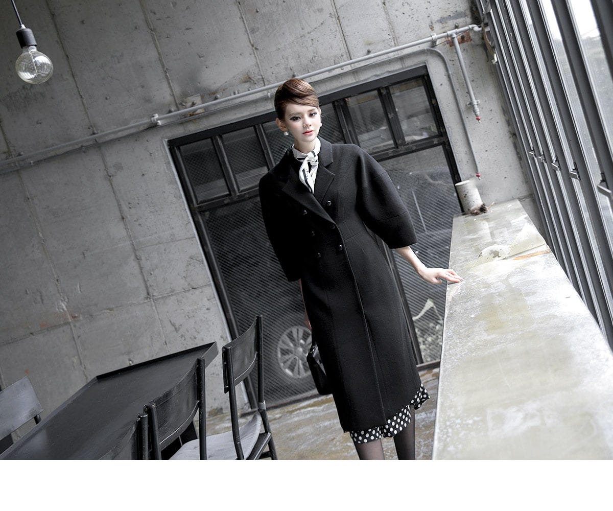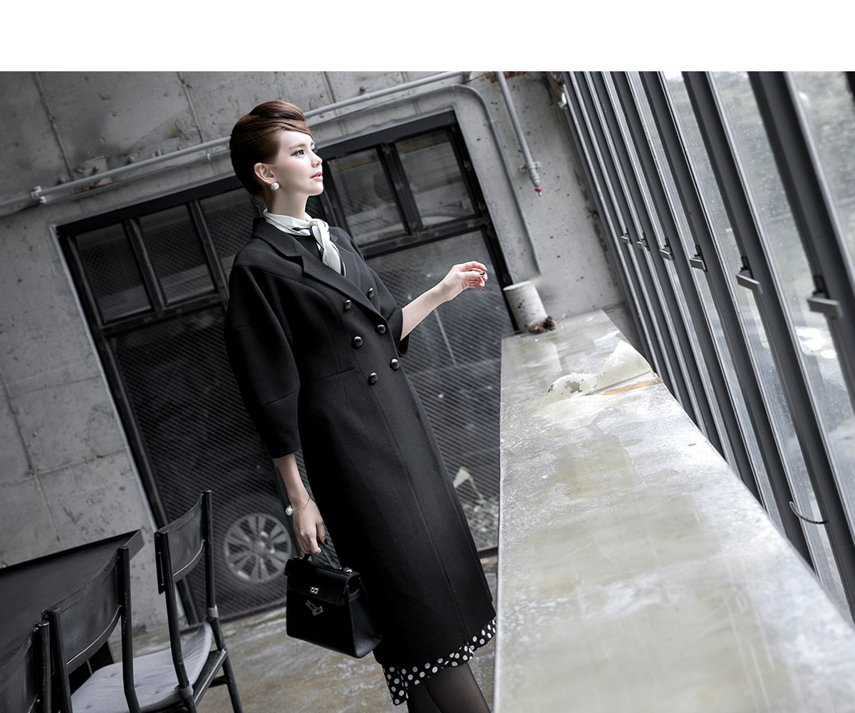 J-5021 마르셀 슬림 더블 코트 Black