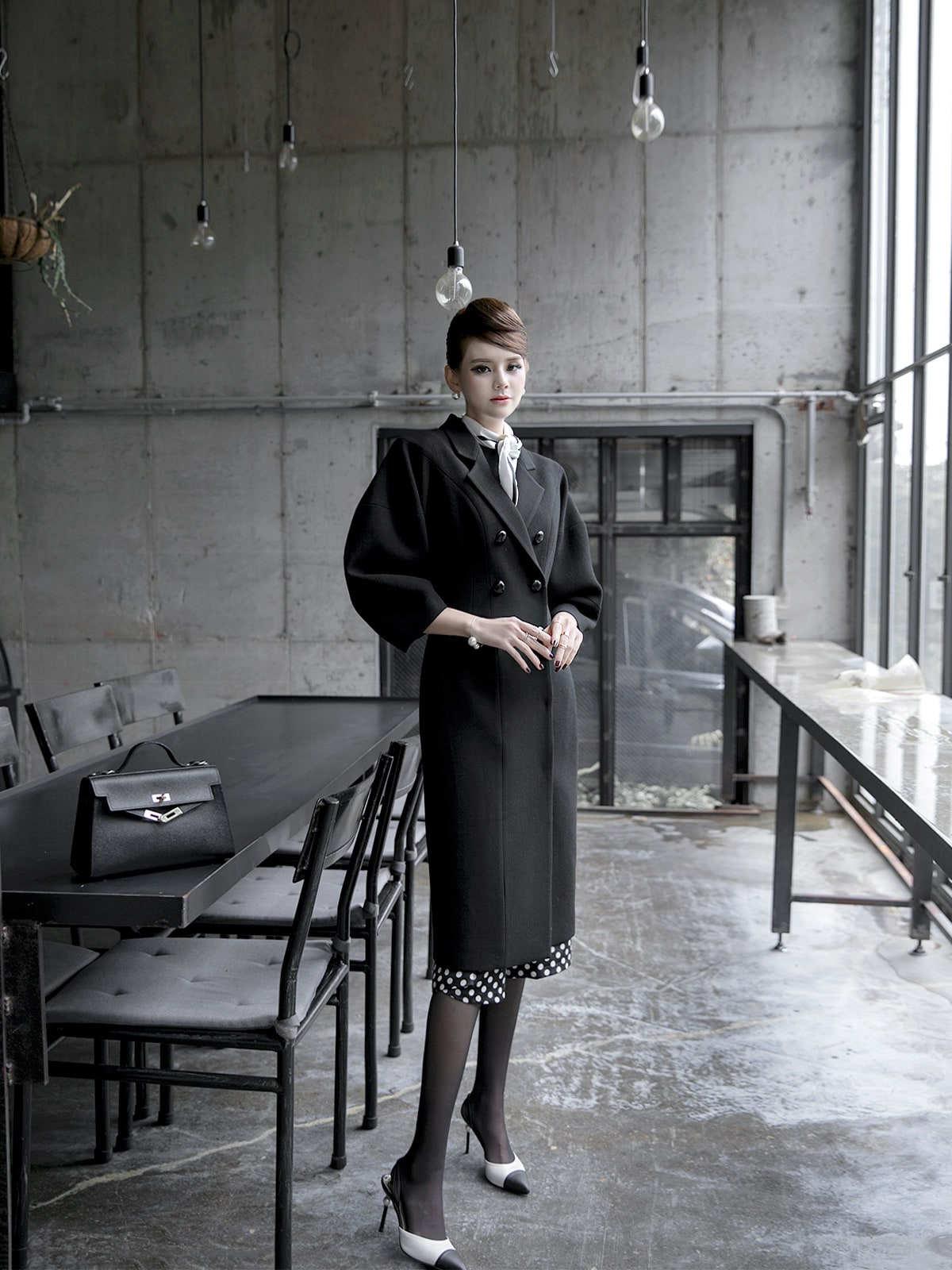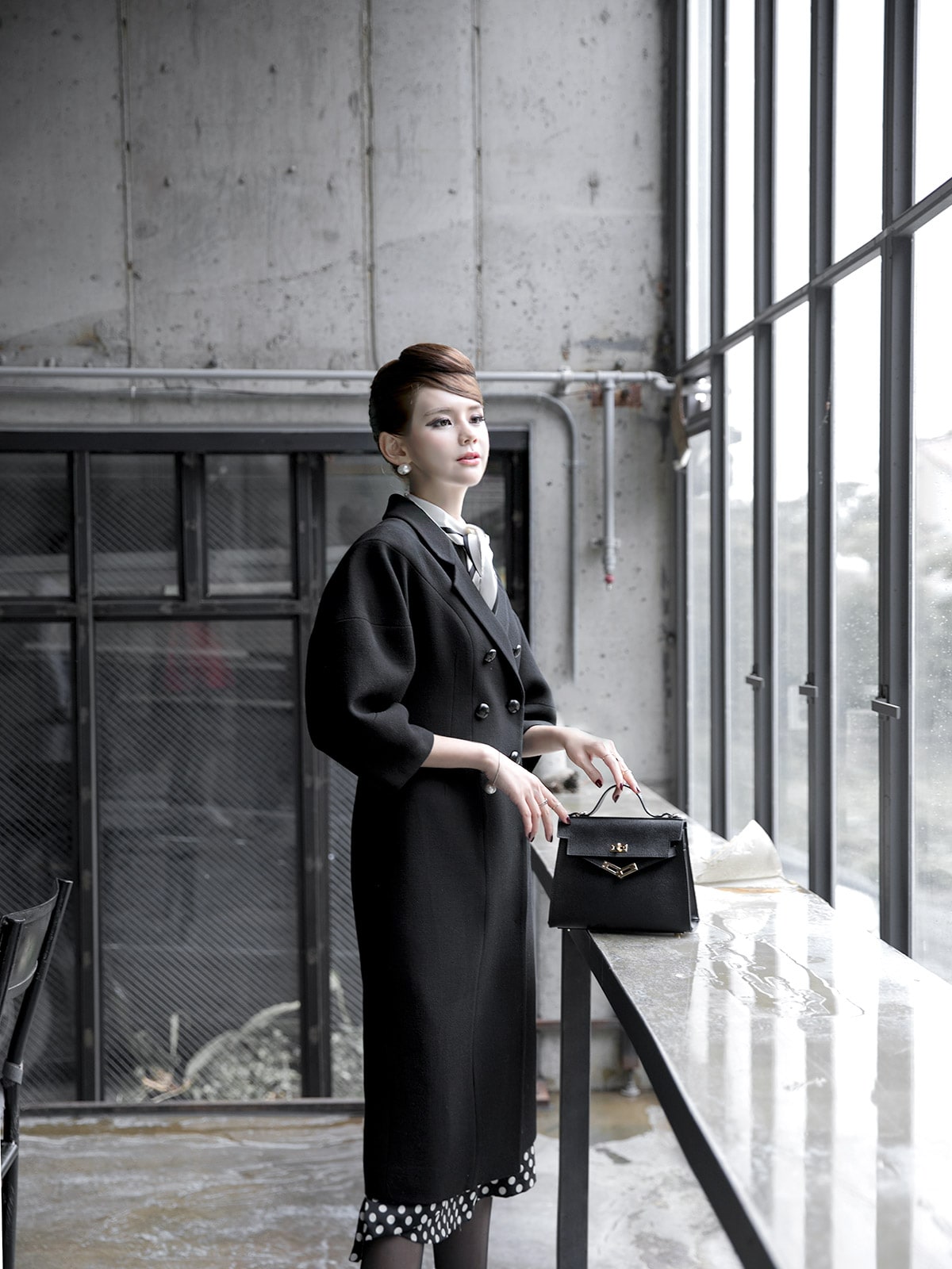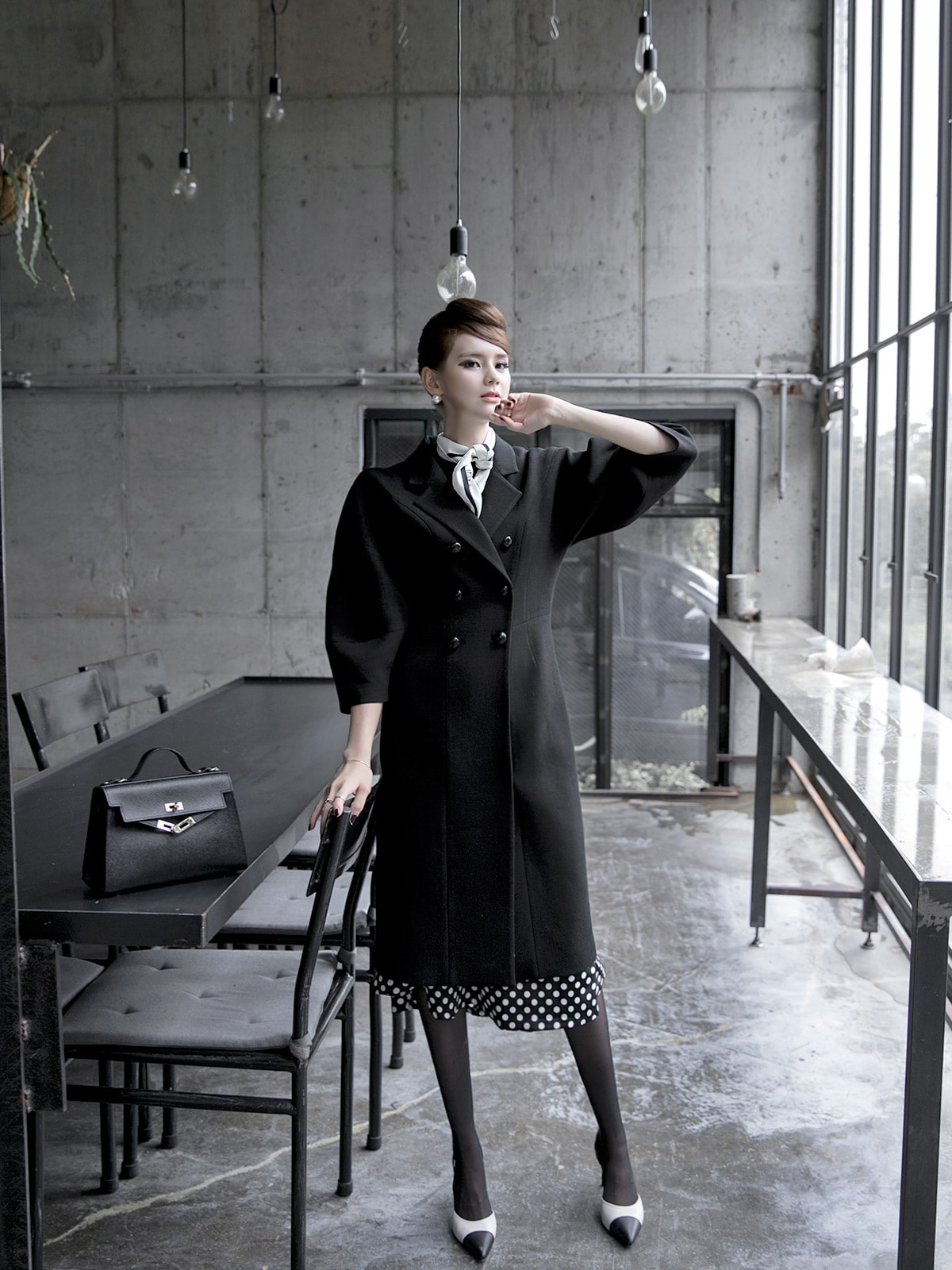 J-5021 마르셀 슬림 더블 코트 Black