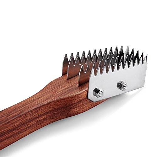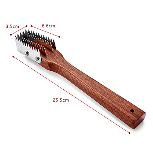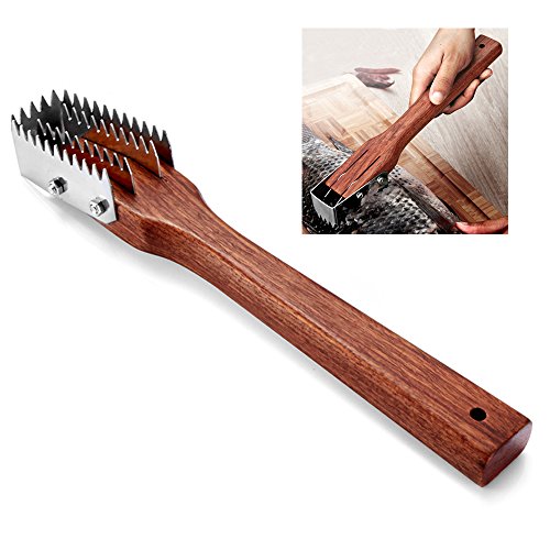 LOHOME® Fish Scale Scraper/Remover - Stainless Steel Brush Head + Wood Grip Handle - Toothed Erasing Knife for Fast Kitchen Food Preparation Tool