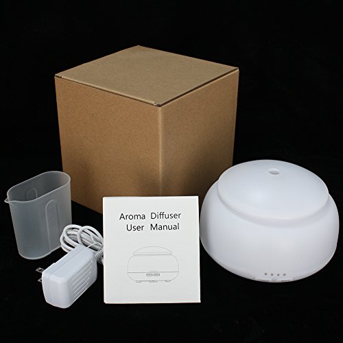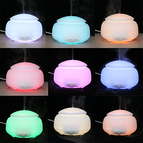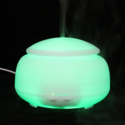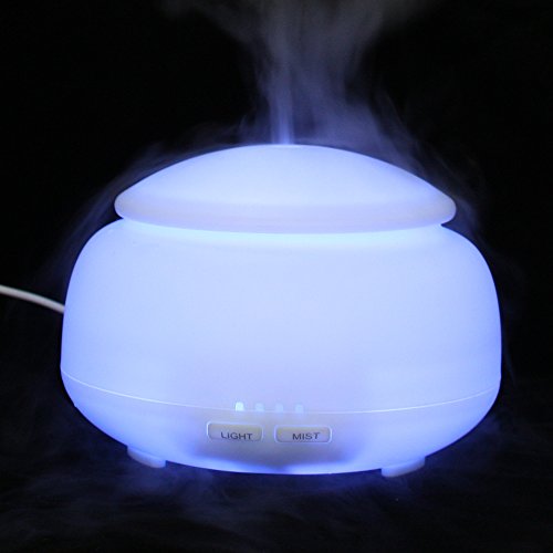 Leelvis 300ml Aroma Essential Oil Diffuser with 1h/3h/6h Adjustable Cool Mist Humidifier with Color Changing LED Lights for Bedroom Baby Room Office Yoga Spa etc (White)