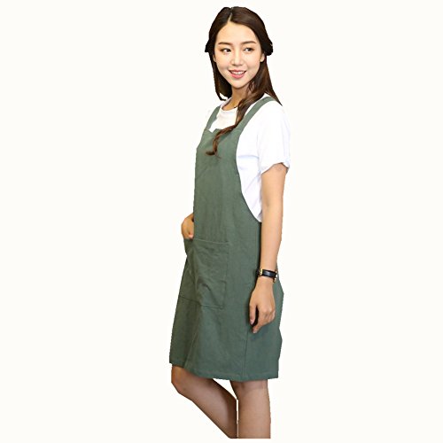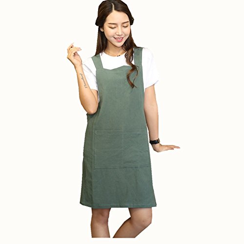 H Shoulder Straps Soft Cotton Linen Apron Solid Color Halter Cross Bandage Aprons Japan Style X Shape Kitchen Cooking Clothes Chef Summer Fit (Army Green)