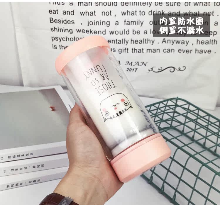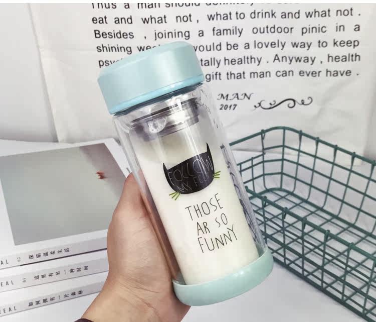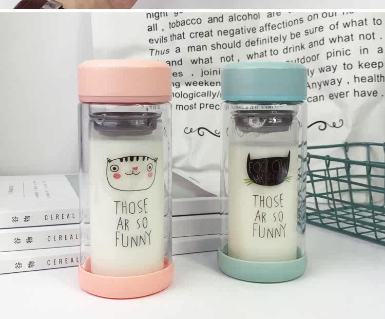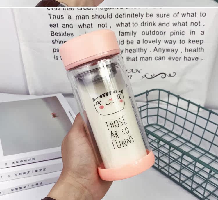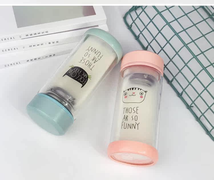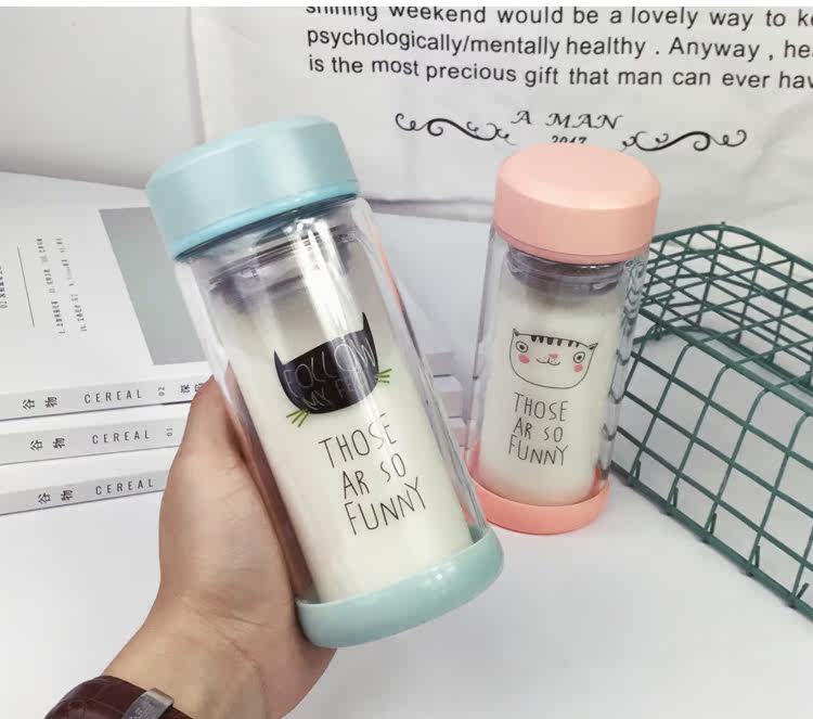 韩国双层防烫玻璃杯女学生韩版便携创意可爱水杯清新迷你随手杯子