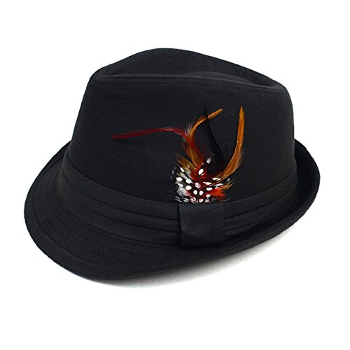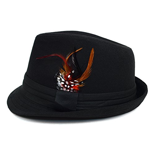 Product DescriptionIt's your classic black fedora dressed up with a lavish feather in the band. If you're looking for a way to add a touch of wild eloquence to your attire, this hat is subtle way to do it.0