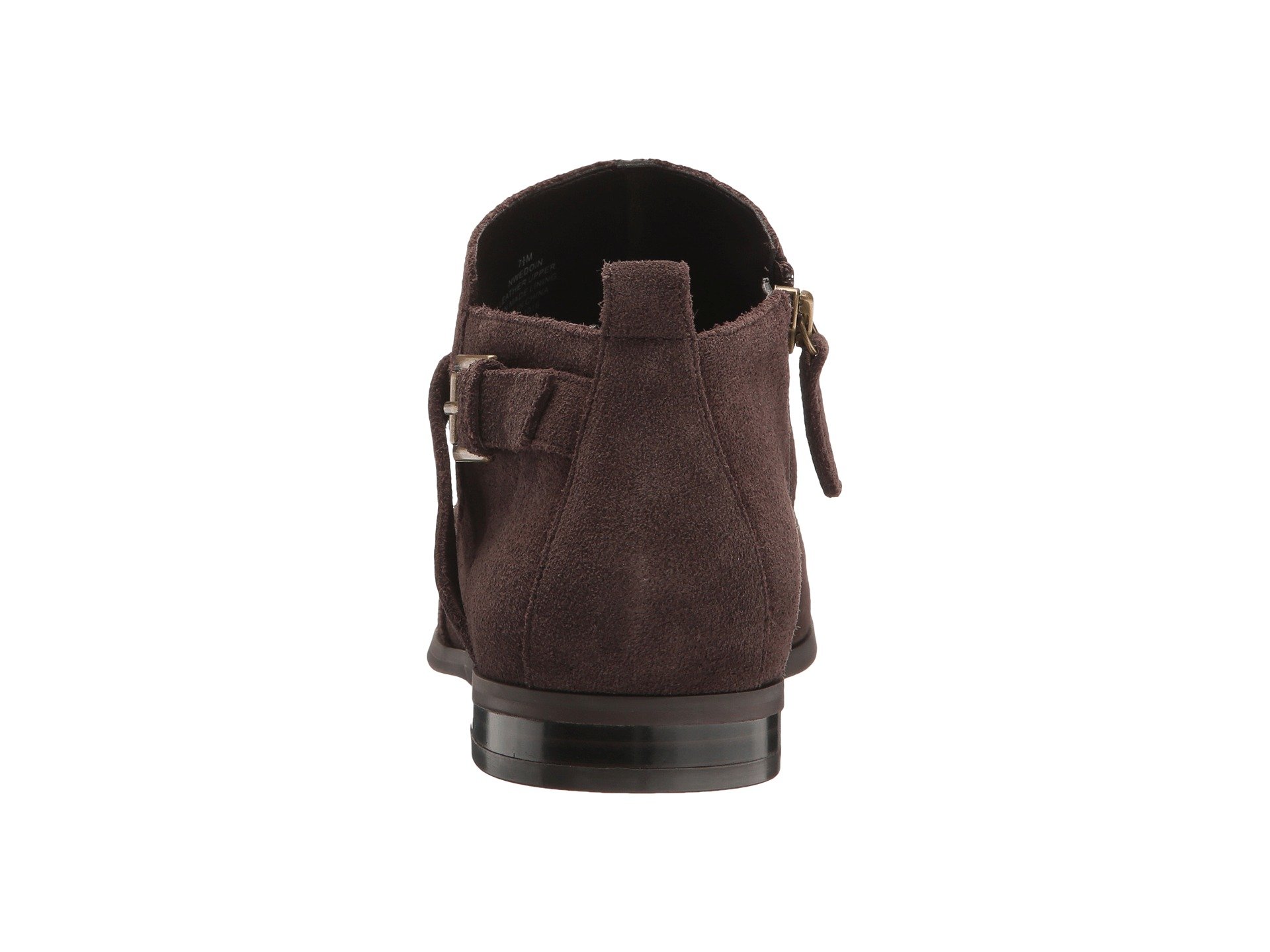 | Product Information SKU: #8945606Reel in the compliments when you flaunt your on-trend style in the Nine West? Edoin bootie.Leather upper.Side zipper closure.Round toe.Back pull-tab for easy entry.Buckled strap detail at side.Man-made lining.Padded footbed.Mini stacked heel.Man-made sole.Imported.Product measurements were taken using size 9, width M. Please note that measurements may vary by size.Weight of footwear is based on a single item, not a pair.Measurements: Heel Height: 3?4 in Weight: 11 oz |