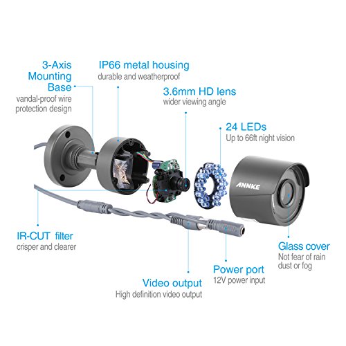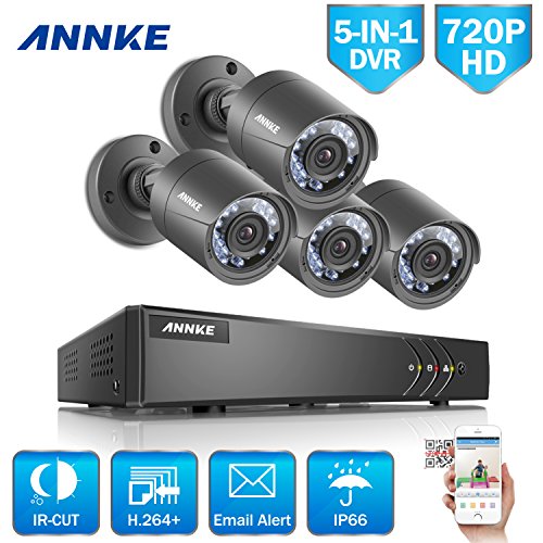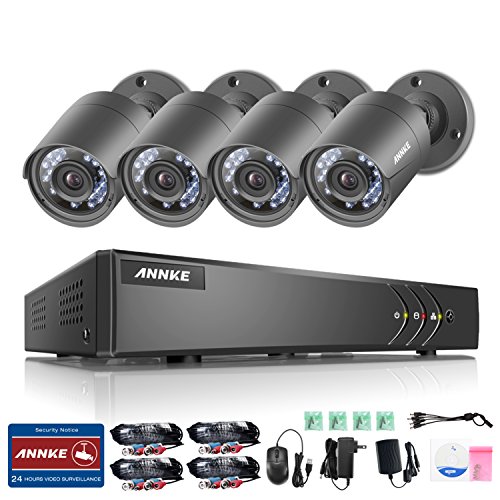 ANNKE 4CH HD-TVI 1080P Lite Video Security System DVR and (4) 1.0MP Indoor/Outdoor Weatherproof Cameras with IR Night Vision LEDs, NO HDD