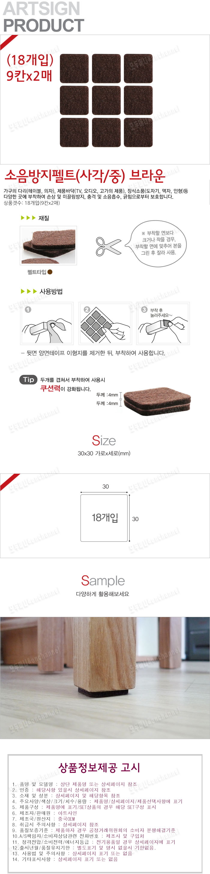 - 품명 및 모델명소음방지펠트(사각/30x30mm)(브라운)