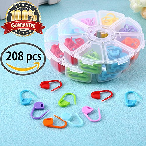Locking Stitch Markers 208 Pieces Knitting Stitch Counter Multi-Colored Crochet Stitch Needle Clip with Compartment Box by Meiso (2 pack)