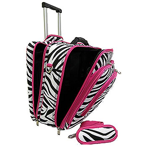 - Feature : Black & White Damask rolling laptop briefcase bag (Damask cross body messenger bag sold separately) / Silver tone accent hardware / Padded interior FITS A 13", 14", 15", 16" OR 17" LAPTOP (MEASURED CORNER TO CORNER DIAGONALLY) / Bag Dimensions: 16 "L X 7 "D X 13 "H / Interior zipper pocket & zipper top closure. Retractable pull out handle & wheels for easy mobility.