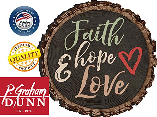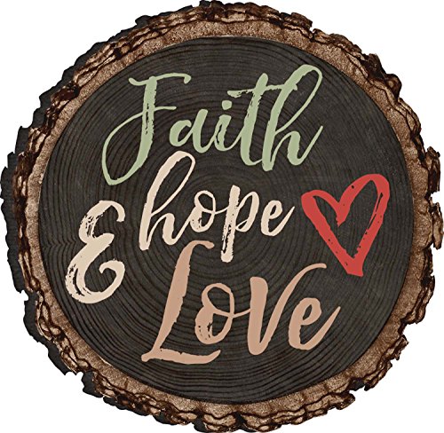 Faith Hope And Love Heart Rustic Bark Look Wood Circle Magnet