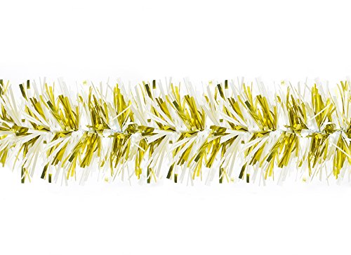 Queens of Christmas HP-GARST-WH/GO-03 Mylar Stuffed Artificial Christmas Garland, 3", White/Gold