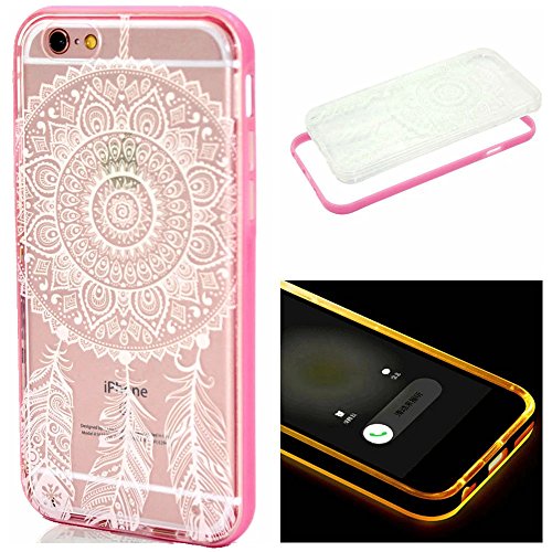 6s Plus Case, iphone 6 Plus Case, ArtMine LED Flash Incoming Call Blink Dream Catcher Hybrid Slim Two Piece Transparent Clear Silicone TPU Back Cover Bumper Frame Case for Apple iPhone 6s 6 plus, Pink