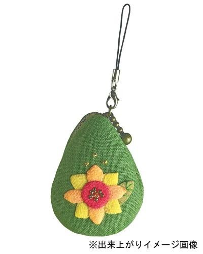 | セット内容 | 表布・裏布(各1枚)、アップリケ用ちりめん(4枚)、キルト綿(1枚)、詰め綿、ししゅう糸(1種)、しずく型パーツ(2枚)、ビーズ(金6個・茶色6個)、ファスナー(1本)、カニカン付きストラップ(1本)、作り方説明書、実物大型紙(台紙含む) |