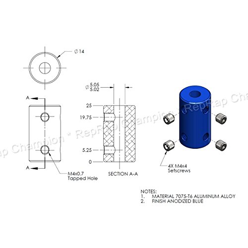 RepRap Champion 2 PCS x Rigid Shaft Coupler 5mm To 5mm for CNC Routers Reprap Prusa 3D printers