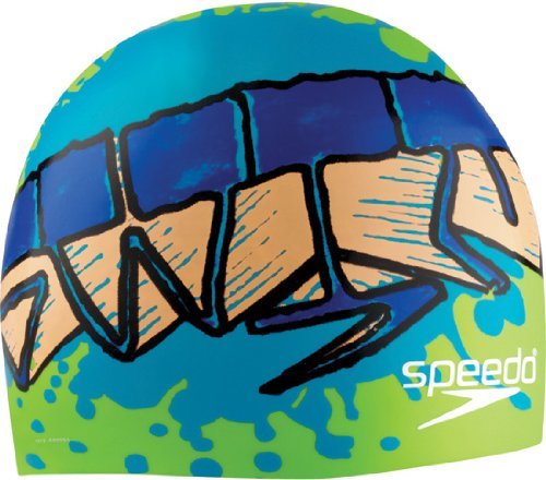 SPEEDO ELASTOMERIC SILICONE 'TAG TEAM' SWIM CAP, BLUE/GREEN