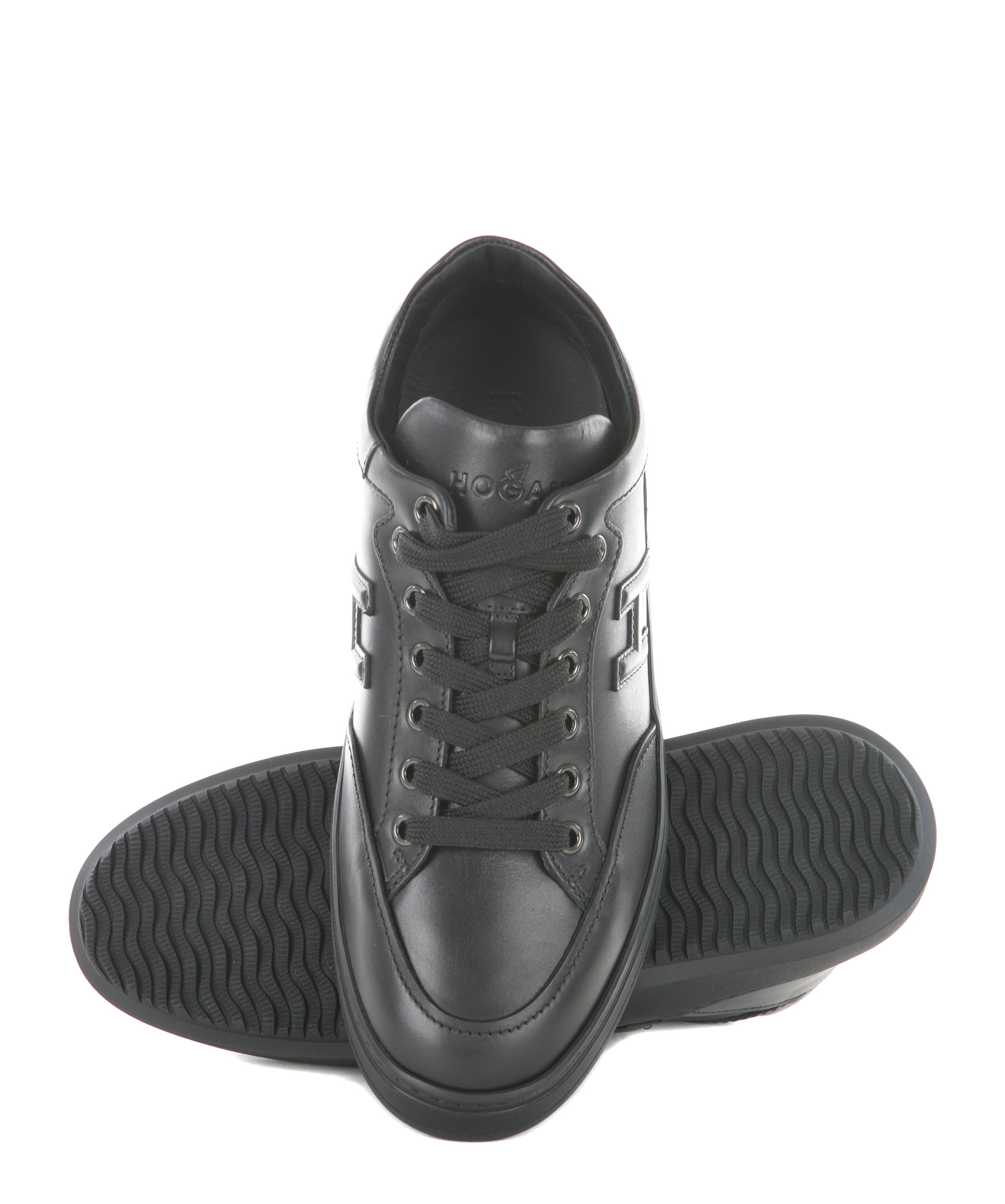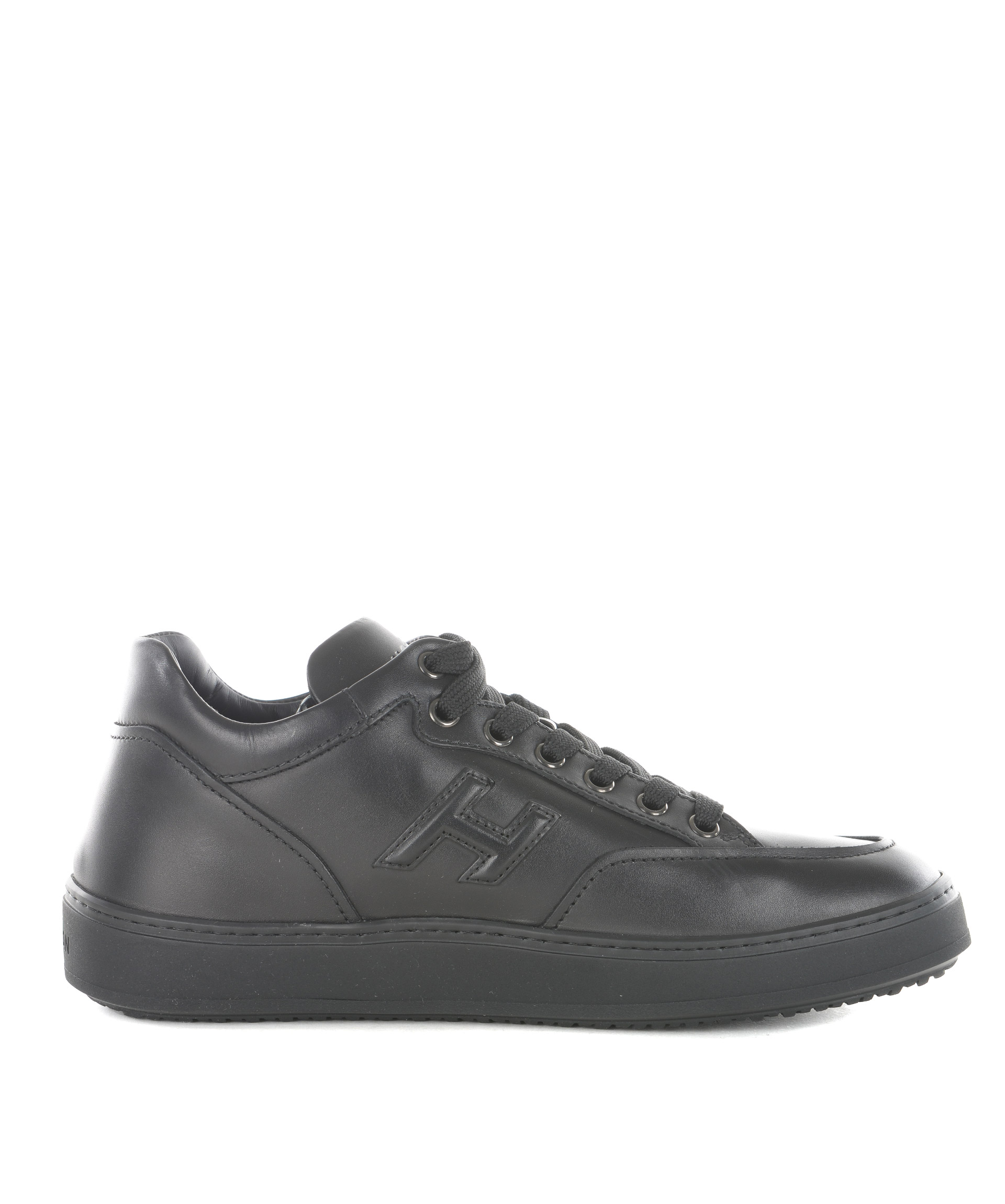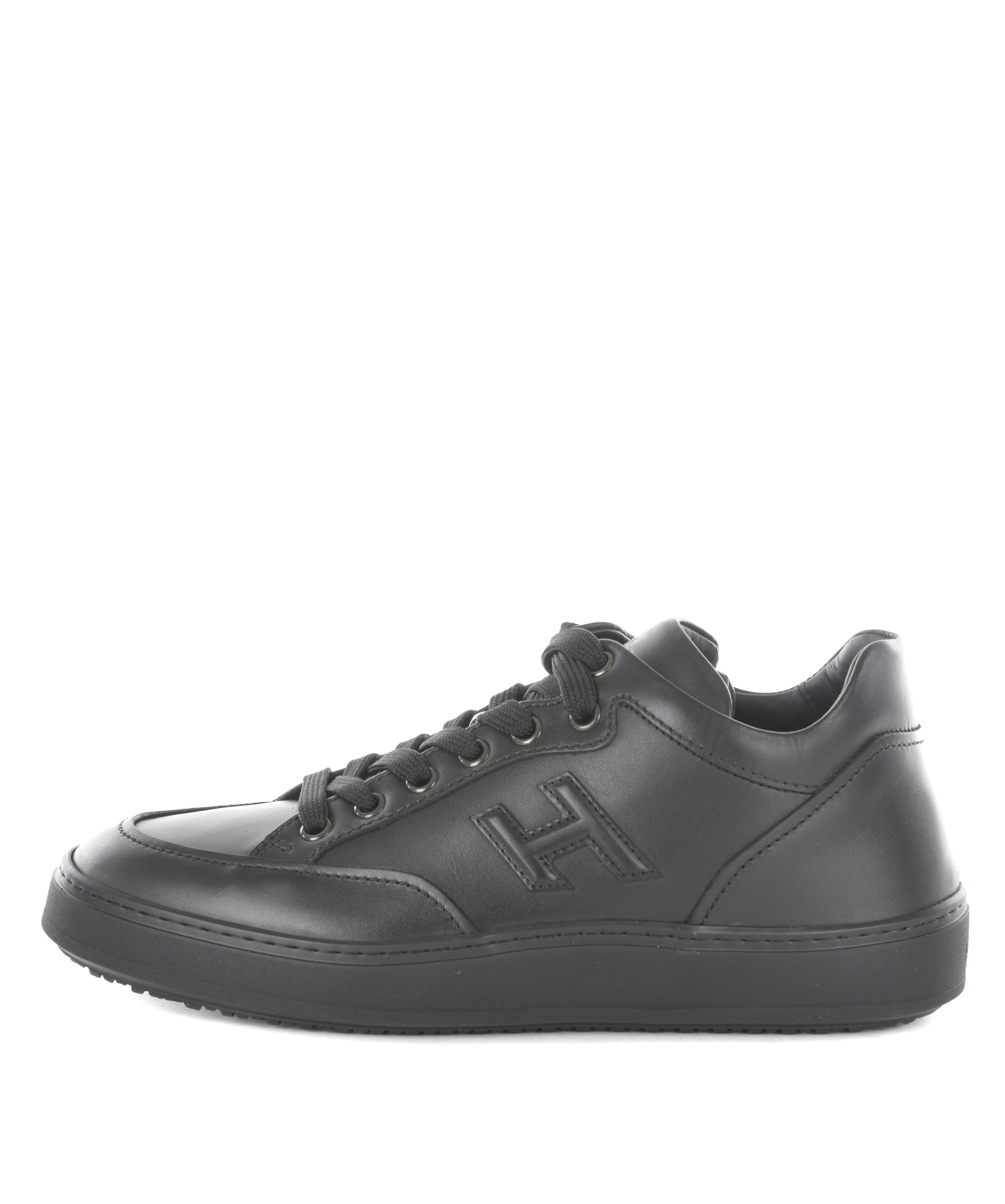 Sneakers Hogan in pelle Nero. Modello mid cut. H laterale applicata. Asole in metallo. Suola in gomma. Logo sulla linguetta. Misura in foto 5