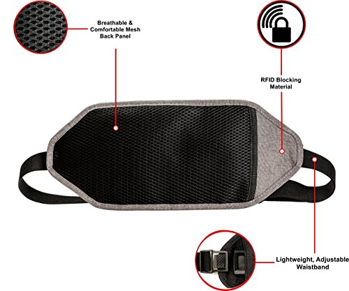 -. Feature : SAFE INTERNATIONAL TRAVEL + RFID PROTECTION - Our discreet waist stash conceals cash, credit cards, & travel documents to keep you secure from thieves. A built-in RFID Blocking lining protects your passport and personal information against electronic pickpocketing. / INVISIBLE TO THIEVES AND PICKPOCKETS - Many money belts leave zippers easily accessible. Our money belt has an additional front flap to protect you from even the most skilled pickpocket. Virtually invisible when worn under clothes. / SPACE FOR EVERYTHING TRAVEL - 3 zippered pockets and 3 credit card slots organize cash, keys, boarding passes, and most new smartphones. Our travel pouch holds more than the competitors. / COMFORTABLE AND ADJUSTABLE - Constructed from ultra-lightweight and durable material, the belt has a breathable mesh back panel that makes all day journeys comfortable. The soft, adjustable waistband is perfect for men and women, and adjusts up to 48 inches. / 100% MONEY BACK GUARANTEE - If you are unhappy with your purchase for any reason, just return the money belt and we will be happy to provide you with a full refund!