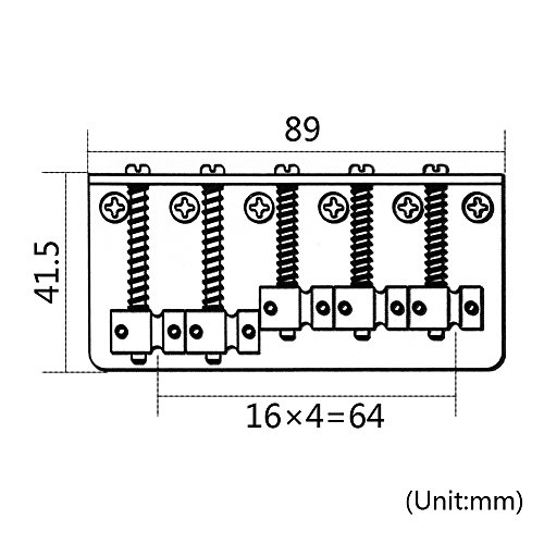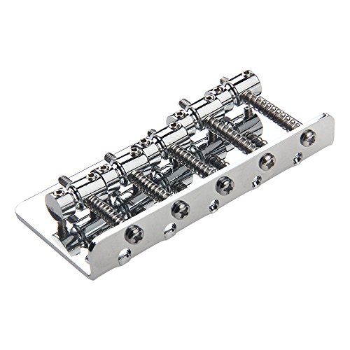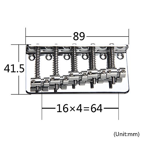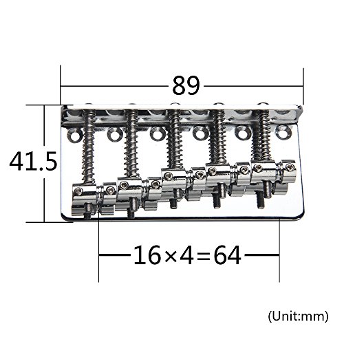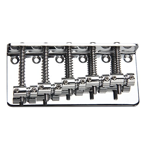 Studio : Kmise Publisher : Kmise Binding : Electronics Product Description 100% Brand new, never used Item's color might be different from the picture because of the aberration. For 5 string electric bass guitar. The bridge measures 89*41.5mm String spacing is about 16.5mm.? 6 Fixing screw holes The string height and length are adjustable. The strings are anchored at the rear of the bridge. Color: Chrome Package Includes: 1 x 5 String Bass Bridge Chrome 0