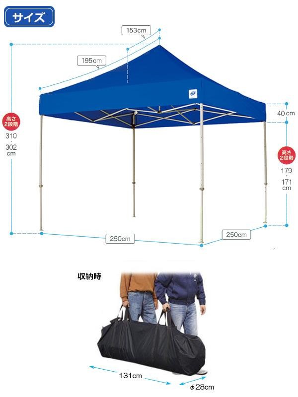 | サイズ | 幅250×奥行250×高さ最大310cm、収納サイズ:幅28×奥行28×高さ131cm 個装サイズ:23×23×135cm |