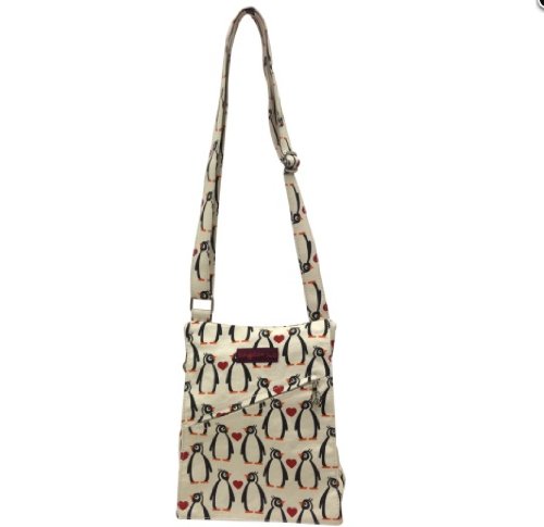 -. Binding : Apparel -. Brand : Bungalow -. Color : Multi -. Department : womens -. EAN : 0843653008579 -. Feature : Versatile vegan-friendly, natural canvas messenger-style bag / Made of natural, durable, 100% cotton canvas / Exterior flap plus and zipper closure with signature Bungalow360 peace sign zipper pull and two pockets / Measures 10"l x 8.5"w (tapers towards top) x 3" d -. ProductGroup : Apparel -. ProductTypeName : BAG -. Size : Small -. Title : Bungalow360 Small Vegan Messenger Bag - Penguin -. UPC : 843653008579