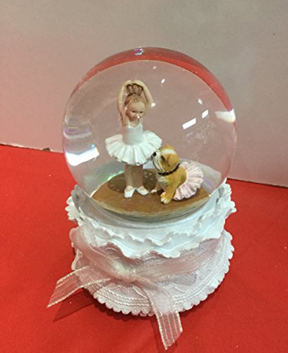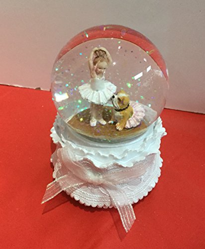 Lace Ballerina and Bulldog 80MM Musical Glitterdome Plays Tune Someday My Prince Will Come