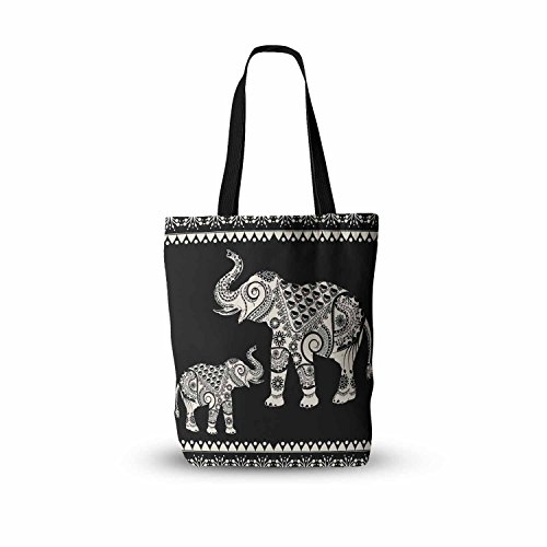 KESS InHouse Famenxt "Ornamental Indian Elephant" Black White Digital Everything Tote Bag, 16" x 16", Multicolor