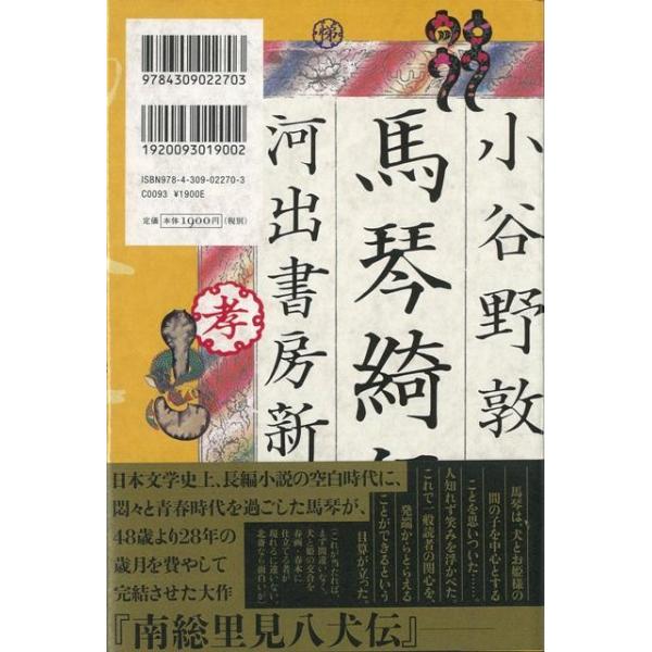 【商品基本情報】 商品名称:馬琴綺伝 著者/出版社:小谷野 敦/小谷野 敦 初版発行日:2014/03/30 サイズ:四六判 ページ数:352 ISBN/JAN:9784309022703/4528189560604