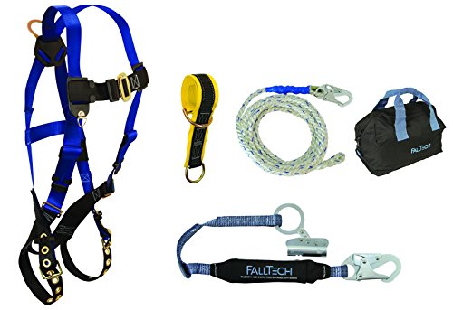 -. Title : FallTech 9103JK Roofers Kit - 7016 Harness, 8150 Vertical Lifeline, 8368 SAL with Trailing Grab, 7372 Pass-Through Sling Anchor, Blue