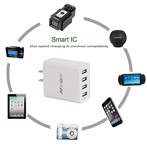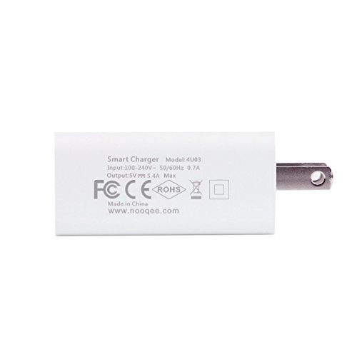 USB Charger,NooQee 27W 5.4A 4-port USB Wall Charger Travel Charger Charging Station 2.4 Amps Each Port Smart IC for iPhone, iPad, All Smartphones,Tablet, Camera, GPS and More(White)