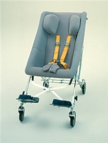 -. Feature : Transports special-needs child in car or van (complies with F.M.V.S.S.123) / Five-point harness, headrest, and four foam positioning inserts