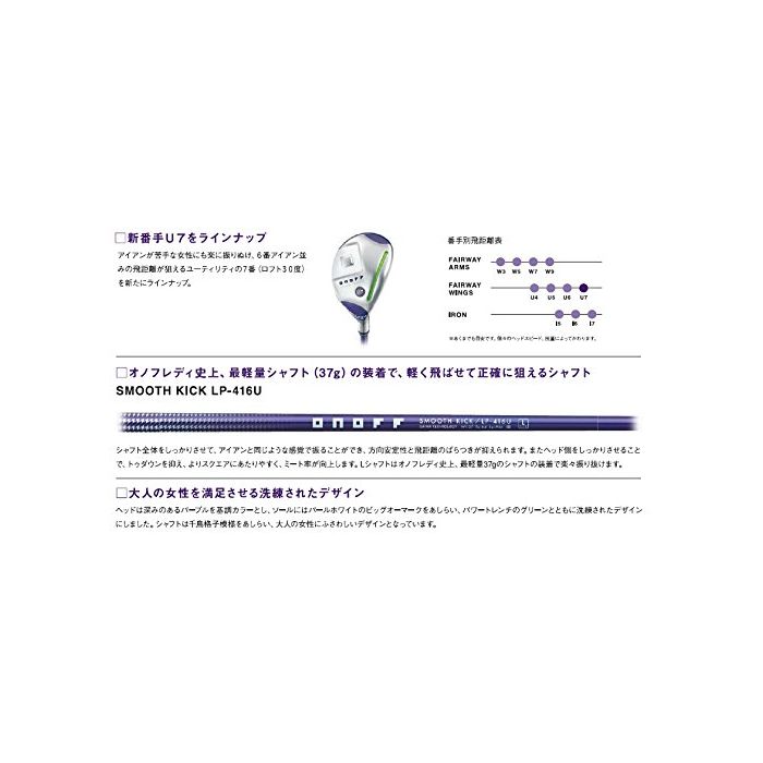 원본상품명: ONOFF(オノフ) FAIRWAY WINGS LADY レディス ユティリティ SMOOTH KICK LP-416U シャフト フレックス:L 番手:U5 OFLP416U5L 右利き用 ロ