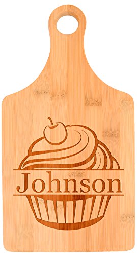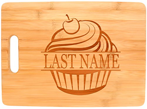 -. Brand : Personalized Gifts -. Feature : A great wedding gift or housewarming gift with a personal touch. / Display the engraved side and cut on your solid side. You get a beautiful piece of home décor and a usable cooking tool all in one. / Made from 100% natural bamboo. Because every piece of wood is unique, the final engraved product may be slightly lighter or darker than pictured. / Bamboo is stronger, lighter, and more sustainable for the earth than traditional hardwoods. / Engraving color may vary slightly, as each piece of wood is unique. -. Model : A-P-L-CB-CZ-0017 -. ProductGroup : Kitchen -. ProductTypeName : KITCHEN -. Title : Custom Last Name Cupcake Baking Kitchen Décor Personalized Bamboo Cutting Board