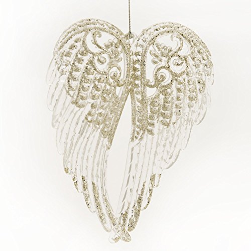 -. Title : Angel Wings Silver-Colored Glitter Resin Hanging Christmas Ornament