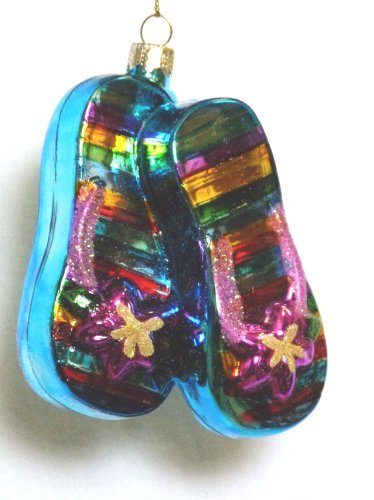-. Title : Tropical Flip Flops Sandals Blown Glass Christmas Ornament