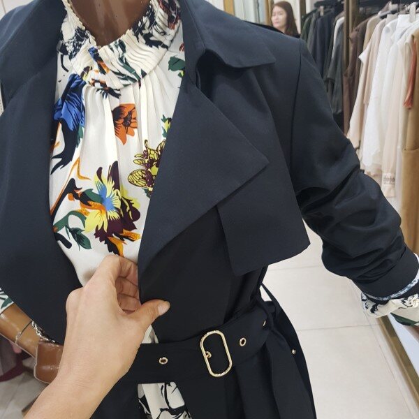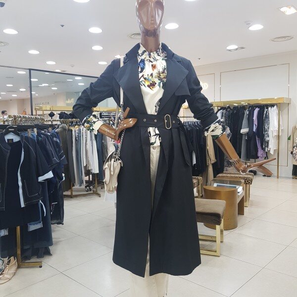 벨트가 포인트인 롱 바바리입니다.