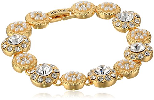 -. Title : Napier Gold-Tone and Pearl Boxed Pave Circle Line Tennis Bracelet