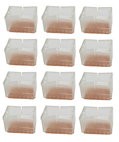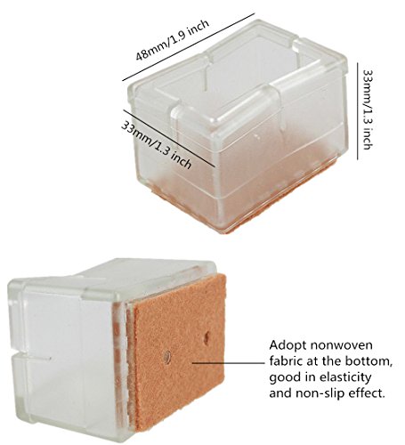 -. Feature : High quality soft transparent silicone square chair feet pads / Size: 48*33*33mm (L*W*H), fit chair leg size: length 39-47mm; width: 24-30mm / Simple to wrap and not easy to fall off / Anti-slip prevent scratches, perfect for wood floor or other surfaces protection / Pack of 12, rectangle bottom and rectangle opening
