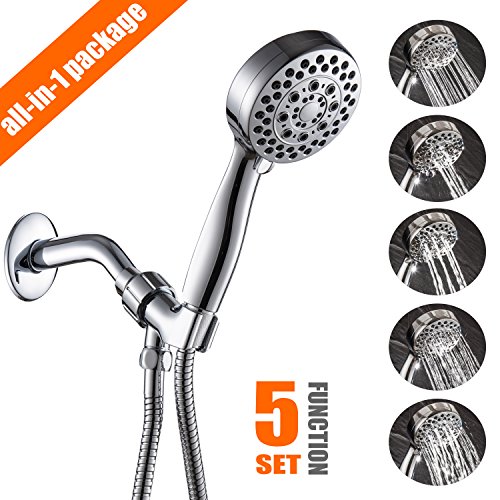 Premium 5-Function Handheld Shower Head Combo - Elegant Showerhead with Bracket, 60'' Hose, and Shower Arm - All-In-1 Pack