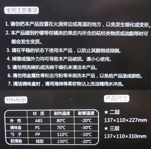 Seasoning box material: PS