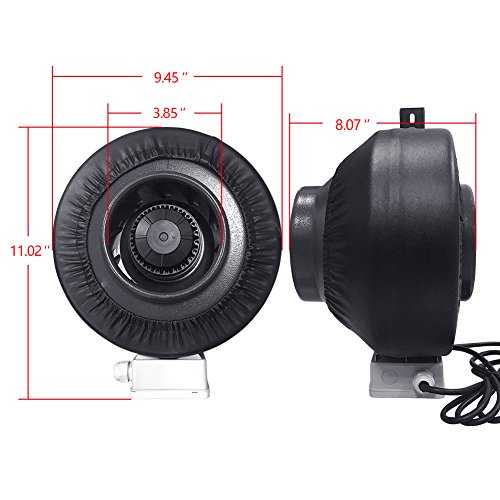 4 in Inline Duct Fan: Noise Level:<47 dB; Air Flow: 190 CFM; Fan Speed: 2600rpm; US 110/120V standard household plug; compatible to all 4” carbon filters, furnance filter and 4in ducting hose.