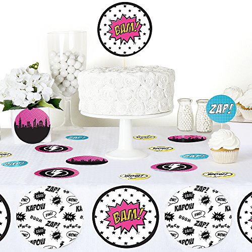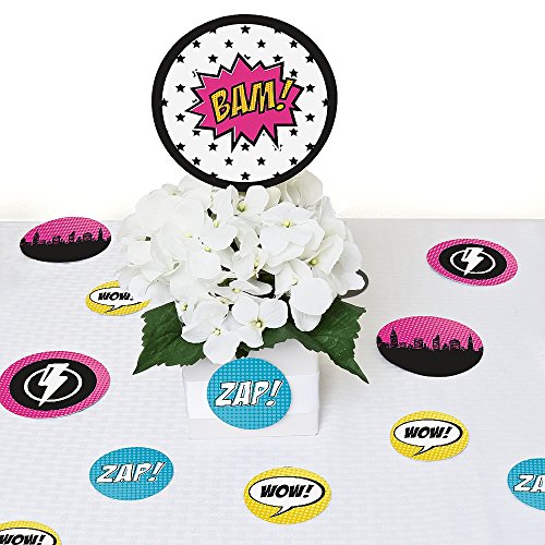 -. Title : BAM! Girl Superhero - Baby Shower or Birthday Party Giant Circle Confetti - Party Decorations - Large Confetti 27 Count