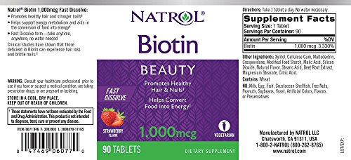 Clinical studies indicate that those with deficiencies of biotin can experience brittle nails and hair loss. By taking Natrol Biotin daily, you can improve strength of nails, healthy hair and radiant skin. Biotin supports the growth of cells and production of fatty acids which can increase the bulb size of hair follicles, which helps to make hair appear fuller and thicker.