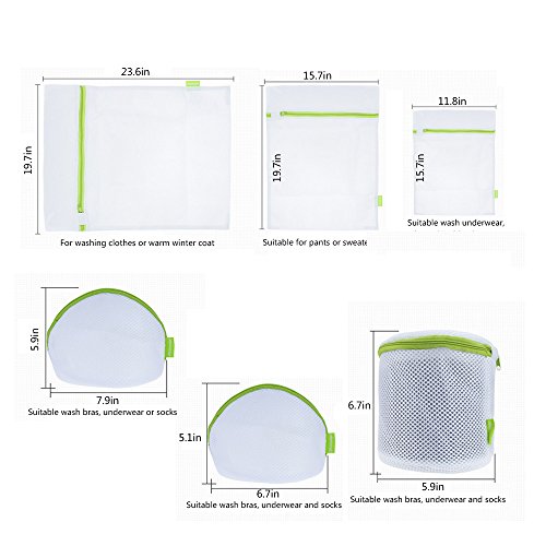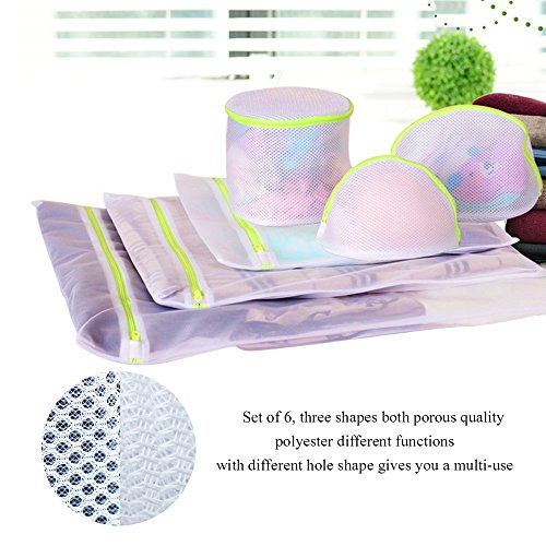 Laundry Wash Bag 6-Pack Yazer Durable Mesh Wash Laundry Bag Blouse, Hosiery, Stocking, Underwear, Bra and Lingerie Travel Laundry Bag with Premium Zipper