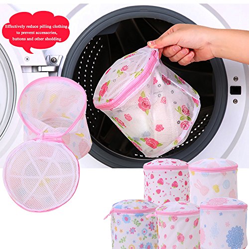 Yazer Cylindrical Colorful Pattern Durable Lingerie Wash Mesh Laundry Bags for Bra,Underwear,Stocking and More Luxury Garment,Pack of 5